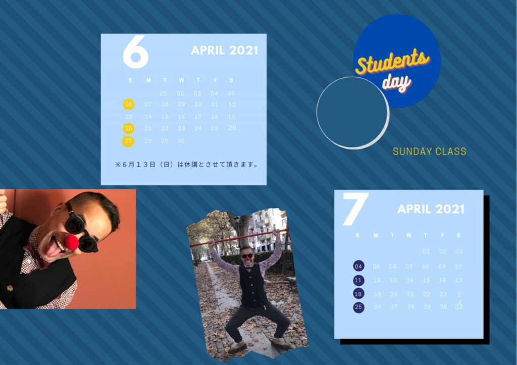 ※天災、体調不良、その他より急遽休講になった場合は、後⽇調整をさせて頂きます。