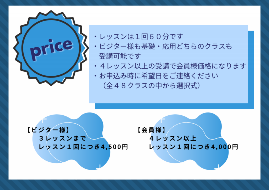 *ビジター様(3クラスまでの受講の⽅)