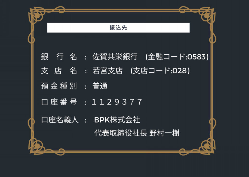※振込⼿数料はご負担をお願いします。