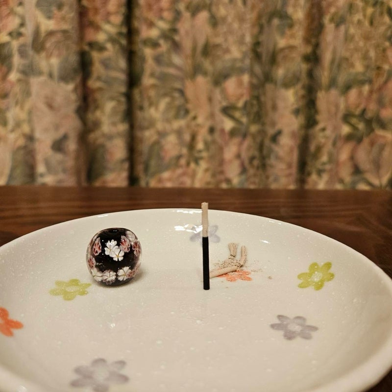 その日もいつものようにお香を焚き、静かに立ち上る煙を見ていた。やがて煙が出なくなり、お香の火が消えるのを待ってゆっくりとお香立てを持ち上げた。すると、